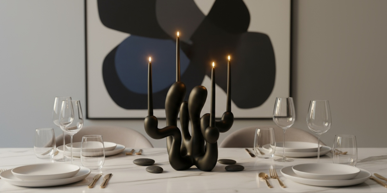 The materials she uses carry texture and depth, making each piece feel unique and intentional. Her paintings, often layered with color, explore the emotional landscape through form and movement. The wood sculptures echo these themes, turning the same concepts into tangible, three-dimensional forms. And the sculptural candleholders, with their sleek designs and refined finishes, marry functionality with fine art, offering pieces that transcend traditional boundaries.